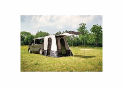 Kein Gestänge, geringes Packmaß, leichtes Gewicht und einfacher Aufbau machen das „Trapez Premium“ zum perfekten Heckzelt. Die neuen Austattungsmerkmale wie Moskitonetz in allen Ziptüren, Schürze zum Stoßfänger und eingenähte Bodenwanne bieten zusätzlichen Komfort. Die Fronttür hat ein zusätzliches Moskitonetz-Fenster und kann ebenso als Sonnensegel aufgestellt werden. Die beiden Seiteneingänge haben getönte Fenster mit Abbdeckung. Der Bestseller mit Schutz vor Moskitos und Insekten hat eine zusätzliche…