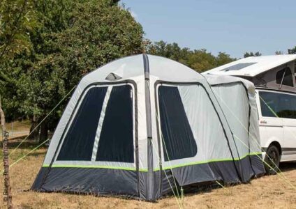 Aufblasbares, freistehendes Heckzelt – Uni Van Air Kreuzkuppeldach-Heckzelt mit Luftschlauchtechnologie, schnell und leicht aufgebaut! Beide Seitenwände und Vorderwand mit Tür, welche als Sonnensegel nutzbar sind oder komplett herausgenommen werden können. Gute Luftzirkulation durch Lüftung im Dach und am Boden. Extra lange Schleuse mit Türen auf beiden Seiten (140cm). Anbringung am Fahrzeug: Einfach über die geöffnete Heckklappe ziehen und mit Heringen seitlich abspannen. Freistehendes Universal…