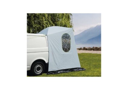Der Clou beim neu entwickelten Heckzelt UPGRADE DOME PREMIUM: Die Flügeltüren können bei aufgebautem Zelt geschlossen werden. Das Kuppeldach verleiht ein großzügiges Raumgefühl und verhindert gleichzeitig Wassersäcke bei Regen und das U-förmige Stahlrohrgestell verspricht Stabilität. Die Vorderwand besitzt eine große Tür (als Sonnensegel nutzbar) sowie ein transparentes Fenster mit Innenabdeckung und zusätzlich Moskitonetz. Die Seitenwände mit Ovalfenstern sowie das Oberlichtfenster im Dach gewähren…