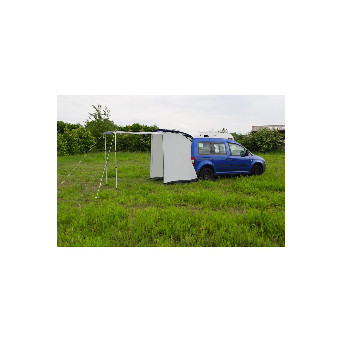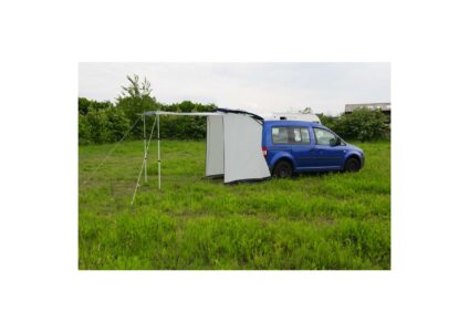 Schneller Aufbau!Zelt wird mit angenähten Gurten unter die Heckklappe montiert. Klettverbindung und Abdichtung zur Karosserie machen es praktisch regendicht. Rückwand als Tür oder Sonnensegel aufstellbar. Belichtung des Innenraumes auch bei geschlossener Tür durh Oberlicht-Fenster im Dach. Kompakt Perfekt geeignet als Raumerweiterung am Minicamper oder als Dusch- oder Umkleidezelt Grundriss ragt nicht über Heckklappenkontur hinaus, dadurch z.B. für Urlaub in Frankreich besonders interessant kein…