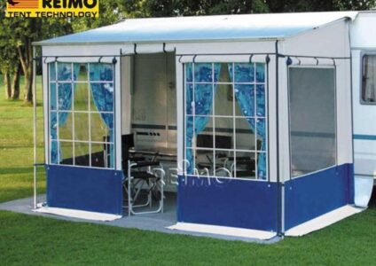 Villa Store – Mehr Wohnraum unter Ihrer Markise Komplettes Markisenvorzeltpassend für Markisen mit Wandmontage von Fiamma,Thule oder Dometic mit einer Montagehöhe von 225 bis 250cm. Die Abdichtung zum Fahrzeug erfolgt durch große Schaumpolster, verstärkte Abspannpunkte sorgen für standfeste Montage. Die Seitenwände werden von mitgelieferten Spannstangen gehalten. Ein Dichtstreifen, der mit Clips und Klett am Markisentuch befestigt wird, sorgt für einen wasser- und winddichten Abschluss. Wasser- und…