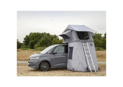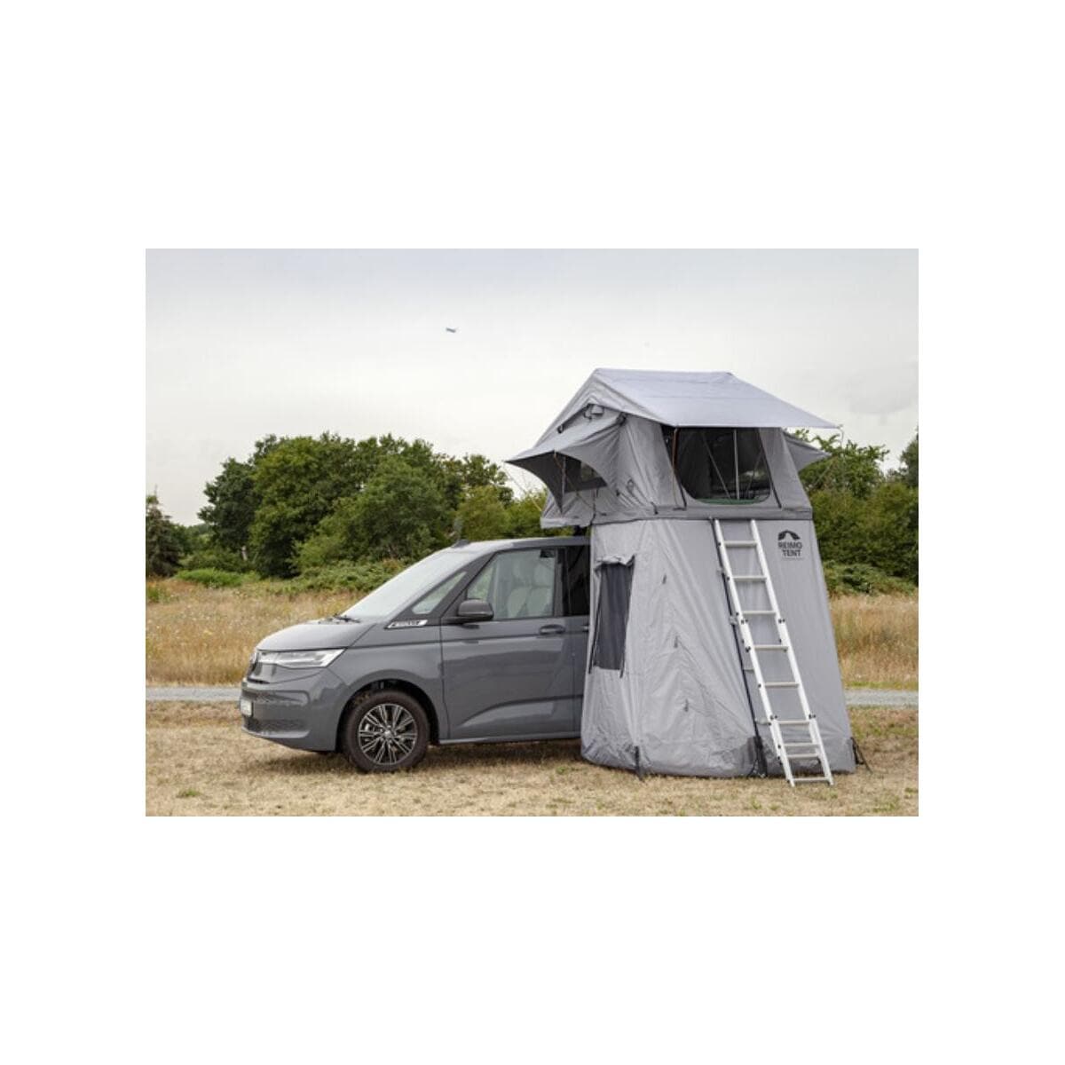 Anbau-Zelt für das Wallaby 2 Dachzelt mit Fenster und Tür für verschiedene Nutzungsmöglichkeiten: als Umkleidekabine als wettergeschützter Stauraum z.B. für Gepäck, Fahrräder etc. für Möbel zum gemütlichen Sitzen für die Campingküche zum Kochen einfache Befestigung am Dachzelt Technische Daten: Maße (BxTxH): 150 x 230 x 180 cm Material: Oxford Polyester Gewicht: 3.5 kg Farbe: grau Lieferumfang: 1 Anbau