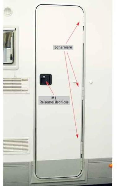 Vorgefertigte Türen mit Standardmaßen. Für Wandstärken von 30 – 35mm Bauform, wie im System 2000 Verschiedene Typen für Reisemobil oder Caravan Caravantür 1700*525mm inkl.M1-Schloß System 2000: Das Klappen und Türsystem 2000 besteht aus einem weiß pulverbeschichteten Aluminiumrahmen mit einer weißen Glattblechfüllung inkl. Styropor-Isolation und Innendekorplatte. Die Montage erfolgt von innen durch Verkleben und Verschrauben. Die Ecken des Außenrahmens haben einen Radius von 82,5mm. Im Lieferumfang ist…