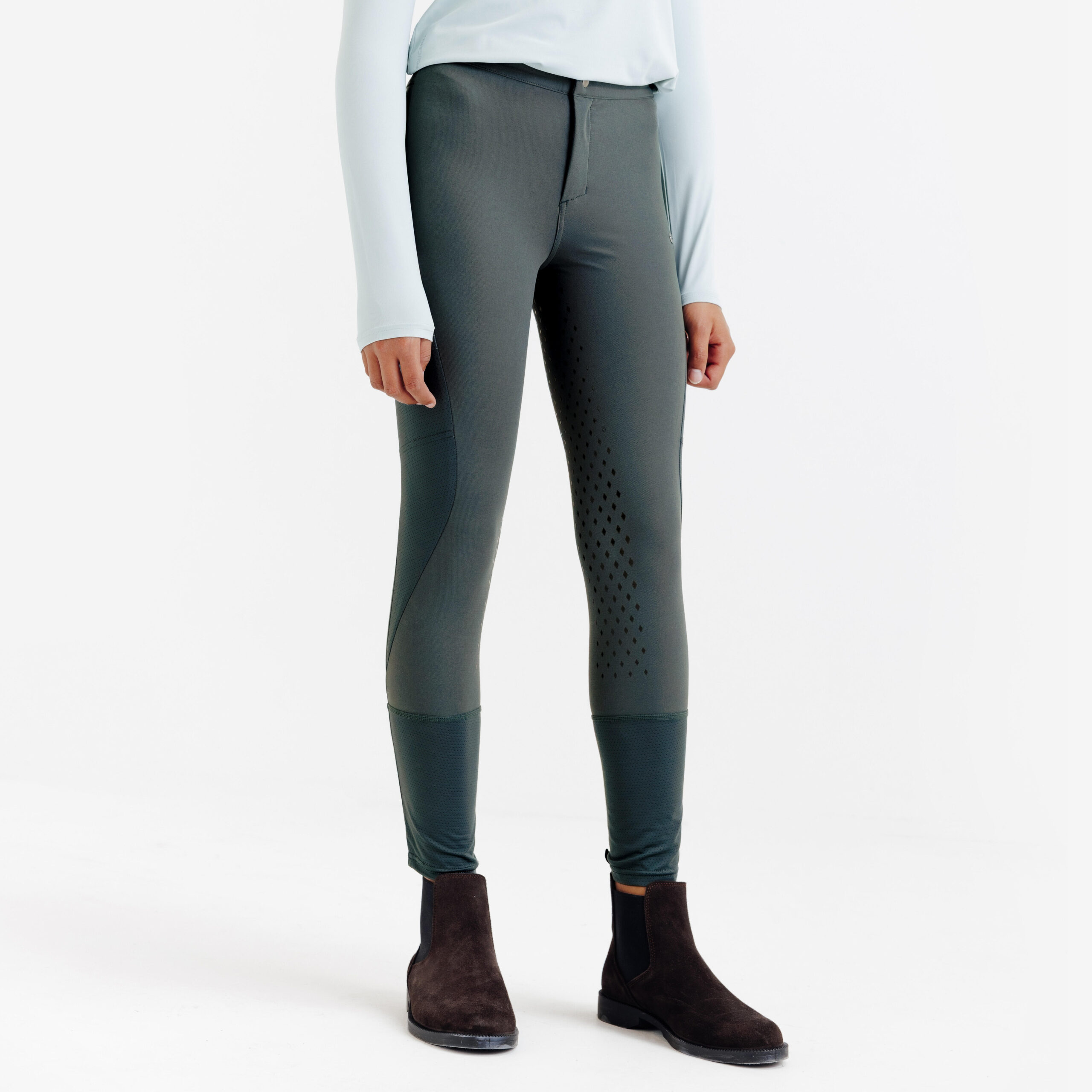 Reithose Full Grip 500 Light Mesh Kinder grün