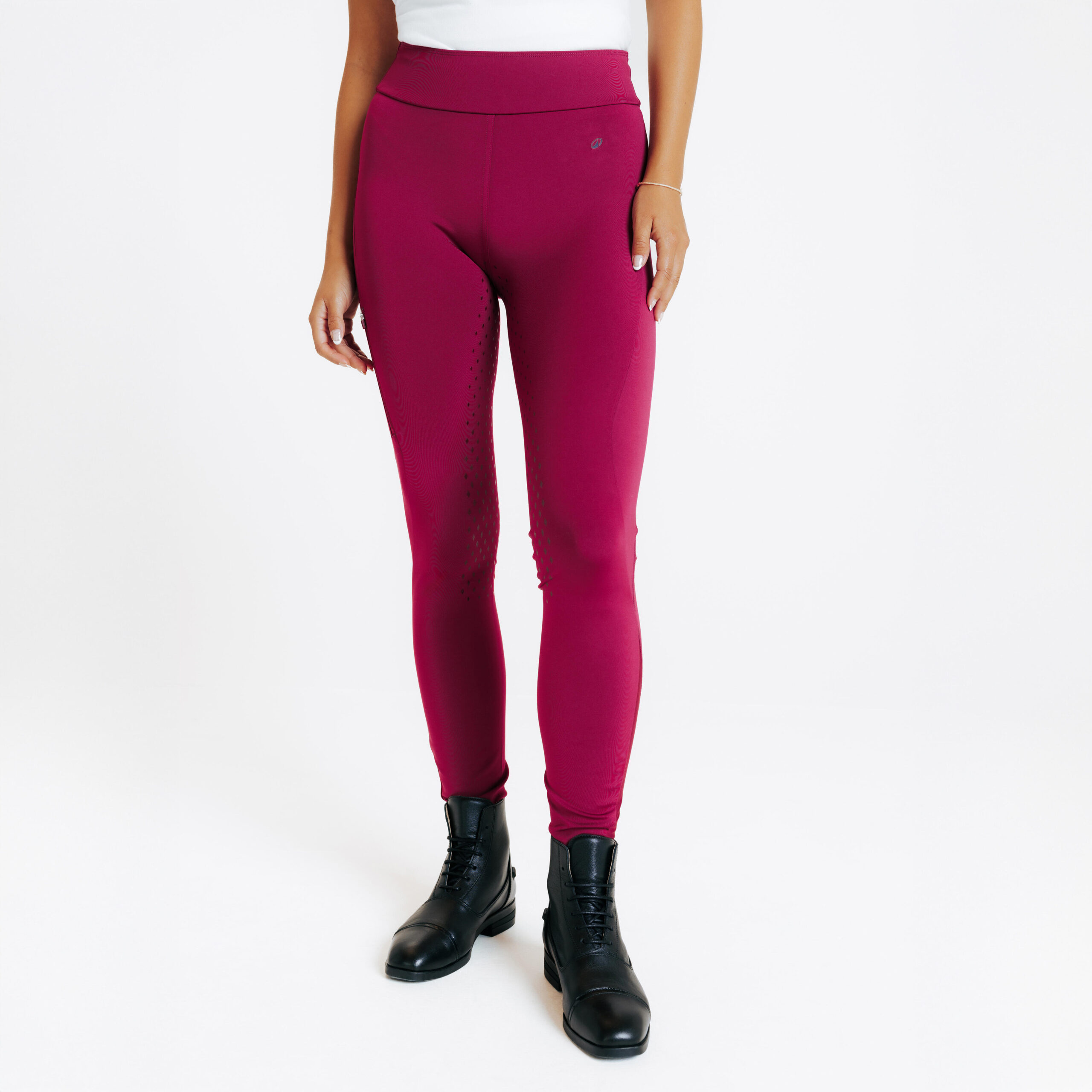 Suchst du eine ultrabequeme Reitleggings? Unsere Leggings 500 ist dank des dehnbaren Materials so bequem, dass du sie kaum spürst. Bewegungsfreiheit::Sehr dehnbares, weiches Material, das deinen Bewegungen folgt |Halt::Bleibt durch die hohe Taille und das Stretchmaterial an Ort und Stelle.|Haftung::Die Sitzfläche aus Silikon sorgt für guten Grip und Stabilität im Sattel.|Nutzerkomfort::Weiches Material, breiter Bund