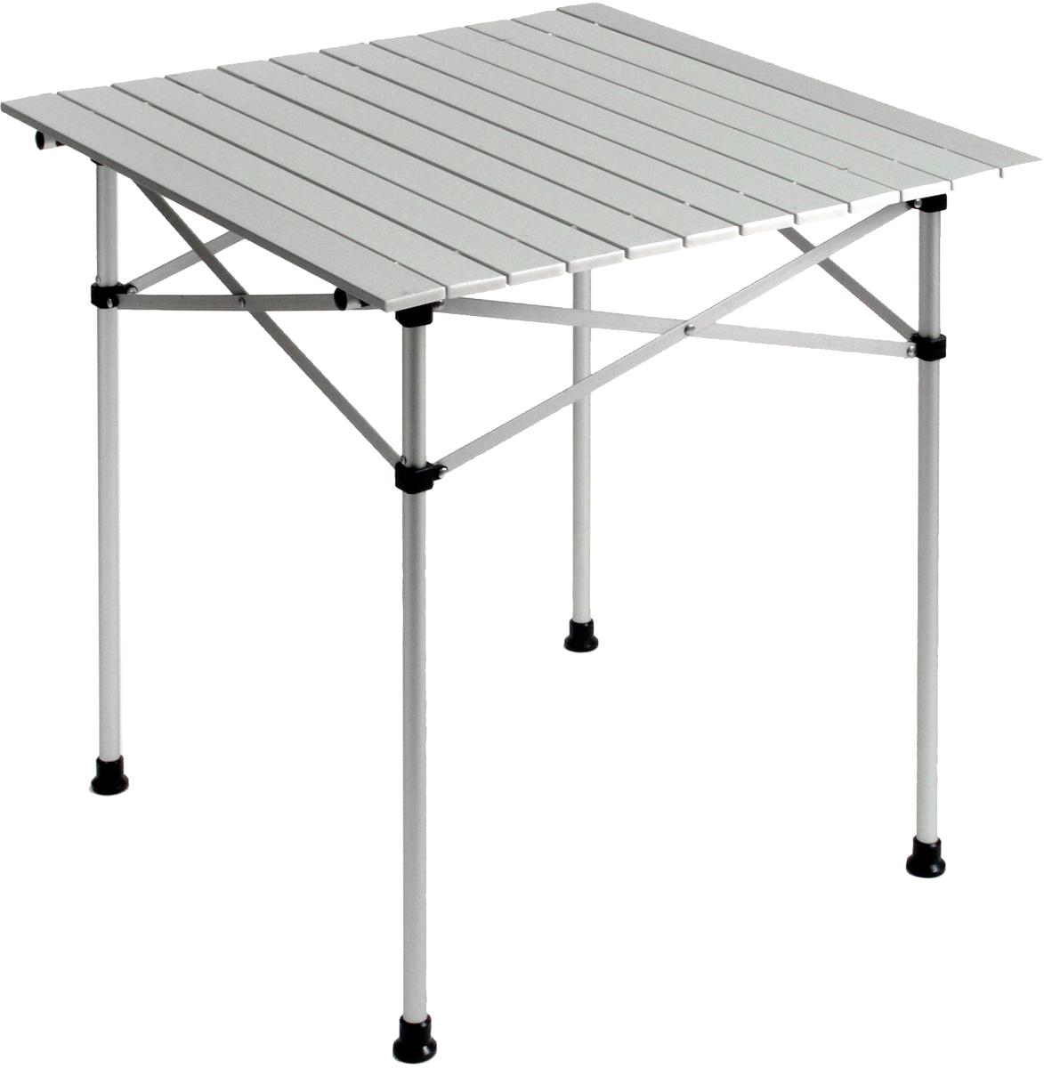 Standfeste und sehr ansprechende Lösung. Trotz des kleinen Packmaßes und des geringen Gewichts hat man einen Tisch, der etwas trägt, eine stabile Oberfläche und genug Beinfreiheit bietet. Technische Daten: Tischfläche Aluminium aufgebaut: 70 x 70 x 70 cm Tragkraft: ca. 20 kg Packmaß: 72 x 14 x 14 cm Gewicht: 3,3 kg