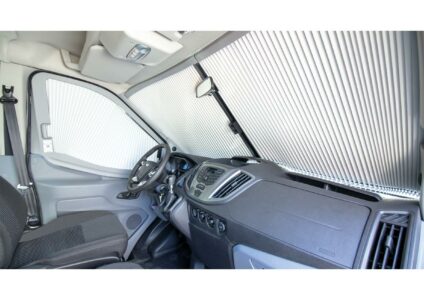 Das smarte Fahrerhausverdunkelungssystem für den Ford Custom ab Bj. 2018 mit Sichtpaket Große Front- und Seitenscheiben am Reisemobil bieten eine schöne Aussicht, aber auch guten Einblick für neugierige Augen. Und wenn die Sonne vom Himmel brennt, heizt sich der Innenraum durch die großen Flächen schnell auf. Die leicht integrierbare Lösung: REMIfront, bestehend aus Frontrollo und Seitenteilen, dunkelt die Fahrerkabine fast vollständig ab. Zusätzlicher Bonus: Aufheizung und Abkühlung werden erheblich…