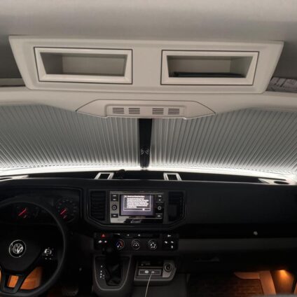 Das smarte Fahrerhausverdunkelungssystem für den MAN TGE ab Baujahr 06/2024 – mit Ablagefach oben – vertikales SystemGroße Front- und Seitenscheiben am Reisemobil bieten eine schöne Aussicht, aber auch guten Einblick für neugierige Augen. Und wenn die Sonne vom Himmel brennt, heizt sich der Innenraum durch die großen Flächen schnell auf.Die leicht integrierbare Lösung: REMIfront, bestehend aus Frontrollo und Seitenteilen, dunkelt die Fahrerkabine fast vollständig ab. Zusätzlicher Bonus: Aufheizung und…