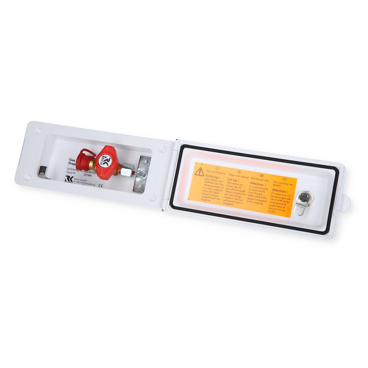 Nach neuester DVGW-Vorschrift mit Gassicherheitsventil. Der Gasschlauch lässt sich nur lösen, wenn die Gaszufuhr abgestellt ist. Erforderlich ist ein Karrosserieausschnitt von 160 x 70 mm. Technische Daten: Schloss: Ja Farbe: weiß Ausschnitt Nennmaß: 160 × 70 mm Packmaß: 245 × 100 × 95 mm Gewicht: 430 g