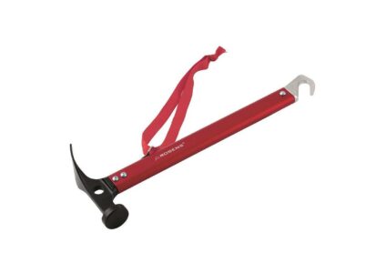 Hammer mit Mehrfach-Nutzung: zum Graben, Heringe einschlagen und rausziehen. Hammer mit Mehrzweck-Hacke Haken zum Herausziehen von Heringen Sicherheitsarmband Rote Farbe für bessere Sichtbarkeit Technische Daten Material: Aluminium 6061 / Stahl Größe: 31 cm Farbe: rot Gewicht: 369 g Lieferumfang: Hammer mit Mehrzweck-Hacke