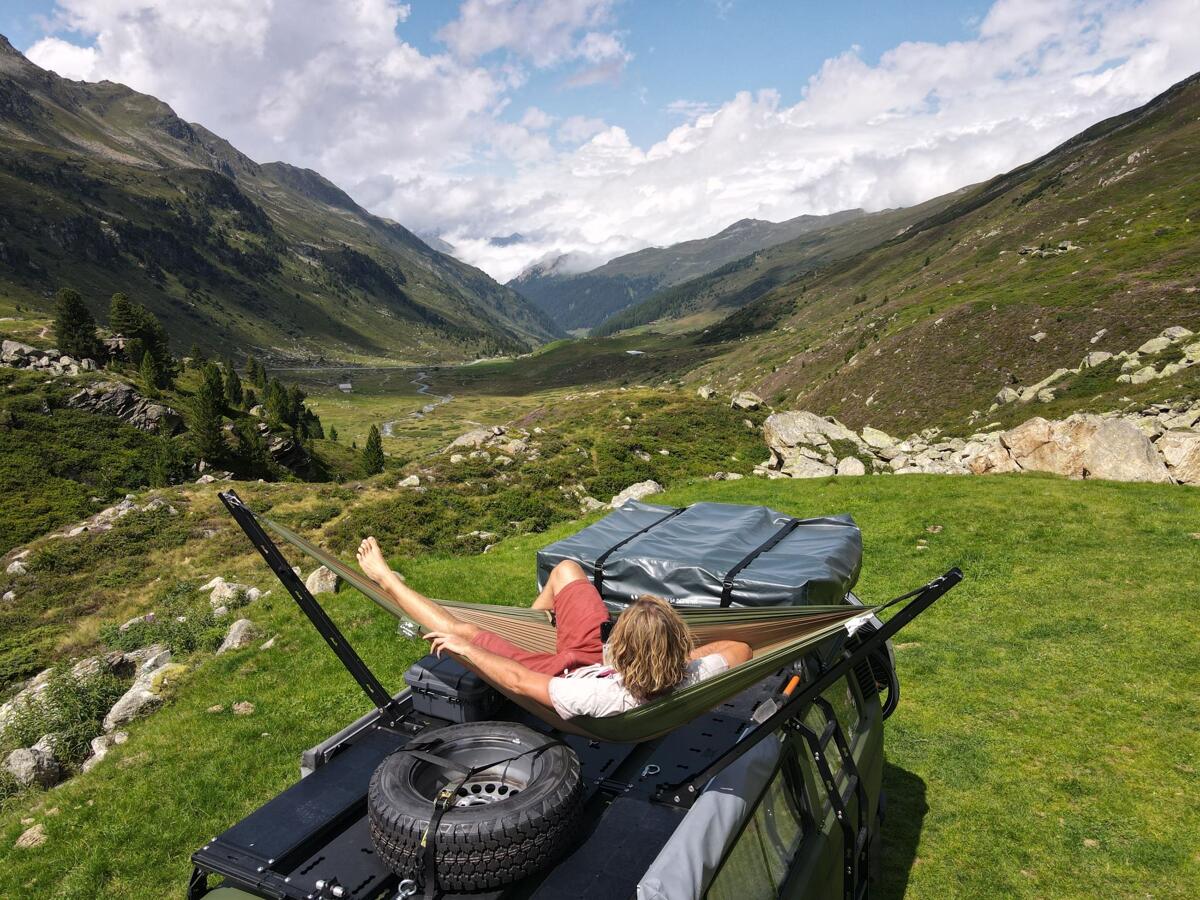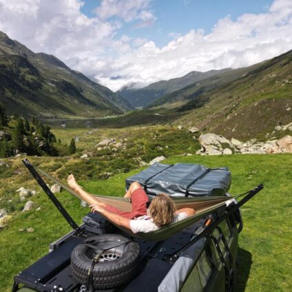 Die SpaceMock Hängemattenhalterung von Rolling Space ist die ideale Lösung für Outdoor-Enthusiasten, die jederzeit und überall entspannen möchten. In Sekundenschnelle aufgeklappt, bietet sie Komfort für den spontanen Chill zwischendurch oder eine Nacht unterm Sternenhimmel.Einsatz: Schnell aufklappbar, ideal für den spontanen Einsatz (z. B. zum Chillen oder für eine Nacht unterm Sternenhimmel).Besondere Funktion: Kann durch integrierte Airline-Schienen auch als Wassersack-Halter verwendet…