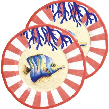 Schönheit und Zweckmäßigkeit der Melamin-Kollektionen, einem widerstandsfähigen, leichten, sehr hygienischen und pflegeleichten Material. Mit einer glänzenden Oberfläche und sehr langlebig lassen sich die Tellersets mit ihren thematischen Variationen, von der Meereswelt bis zu den bunten Elementen der Natur, wunderbar auf den Tisch bringen und mit den lustigen thematischen Tischsets und Tischaccessoires kombinieren.stilvolles & zeitloses Designpraktisches & langlebiges MaterialTechnische Daten:Gewicht:…