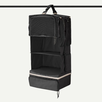 Optimiert beim Reisen den Platz in deinem Rucksack und kann in der Unterkunft als praktisches Hängeregal genutzt werden.
