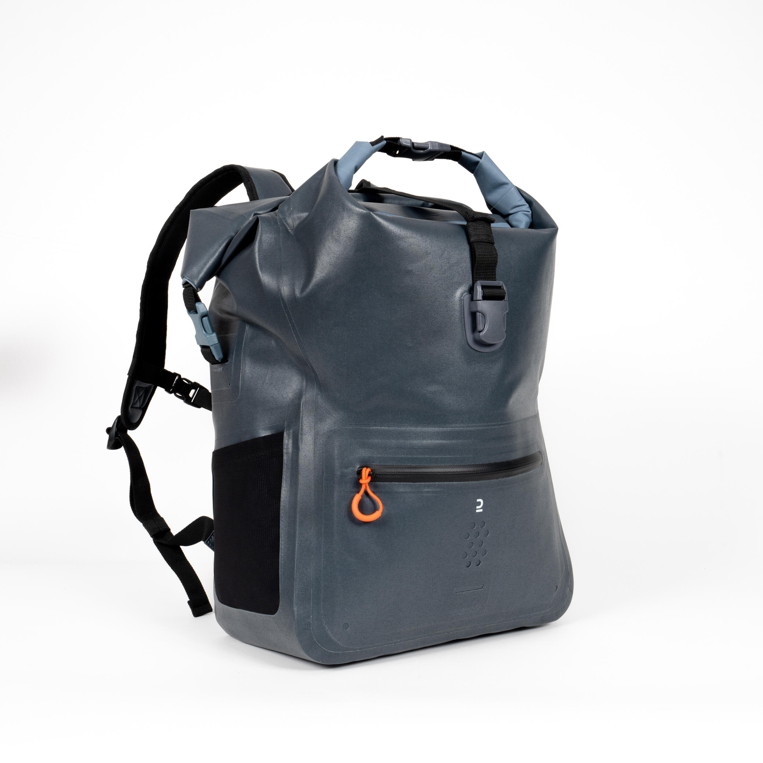 Zweiteiliger. wasserdichter Rucksack. um nasse und trockene Sachen getrennt aufzubewahren. Genug Platz für einen 15″-Laptop. 3 praktische Außentaschen. Verstellbare Träger. Hohe Spritzwasserresistenz (IPX6). nicht ins Wasser tauchen.|2 separate Taschen für trockene und nasse Sachen|Ergonomische. verstellbare Träger mit Polsterung|Tasche im A4-Format. zwei kleine RV-Taschen. Außentasche. nicht wasserdicht