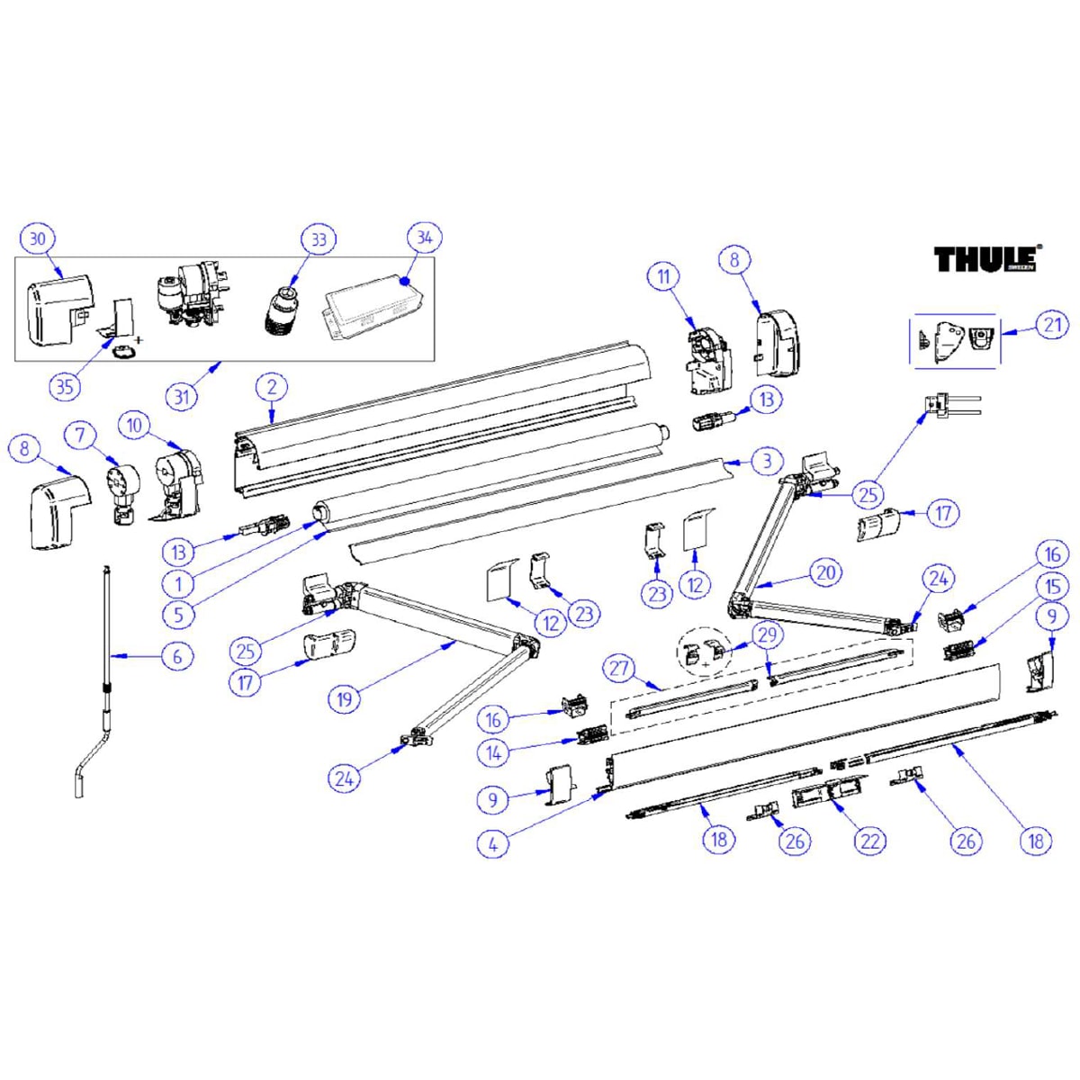 Satz Endkappen (Motor), eloxiert für Typ 5200 Thule Art.Nr. 1500603190 Abbildung Nr. 30