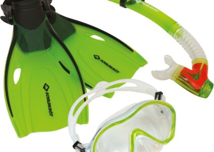Das Schnorchel Set ist mit einem Spritzwasserschutz (Semi-Dry Top), Mundstück aus Silikon, Ausblasventil, flexibles Schnorchelteil und verstellbaren Easy Clip am Schnorchelhalter ausgestattet. Die Brille besteht aus einem Sicherheitsglas, Silikon-Maskenkörper, Silikon-Kopfband und einem leicht einstellbaren Schnallensystem zum Verstellen des Kopfbands. Die Flossen mit offenem Fußteil haben ein verstellbares Schnallensystem für mehrere Schuhgrößen. Anatomisch geformtes Fußteil,mit einem kurzen…