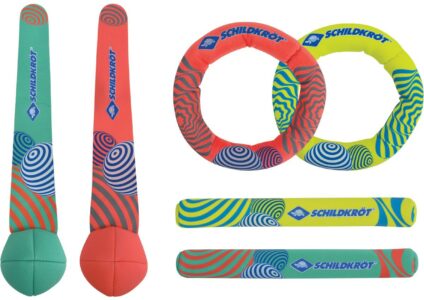 6teiliges Neopren-Tauchset bestehend aus 2 Tauchstäben, 2 Tauchringen und 2 Tauchbällen mit Schweif. Alle Teile sind mit Neoprenüberzug und Sandfüllung, dadurch weich und griffig (kein Vergleich mit den sonst üblichen harten Plastik-Tauchartikeln). Besonderheiten: Ring und Stab haben an einer Stelle einen Schaumstoffeinsatz und stehen dadurch senkrecht am Grund des Pools. Beim Tauchball steht der Schweif auf. Aufgrund dieser Eigenschaften, können auch kleinere, jüngere Kinder Ring / Stab / Ball leichter…