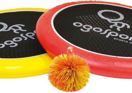 Mit den beiden Ogoscheiben kann der spezielle Soft-Ball hin- und hergeschlagen werden. Der Ball ist weich genug um auch drinnen damit zu spielen, bietet unbegrenzte Spielmöglichkeiten und rollt nicht auf die Straße. Die elastische Netzbespannung der Scheiben gibt dem Ball dabei eine unerwartete Dynamik. Der Rand der Scheiben ist mit einem stabilen, aber leichten Schaum gefüllt und kann auch als Wurfscheibe (Frisbee) genutzt werden. Sie sind sehr verletzungssicher und schwimmen auch. Inklusive Anleitung.