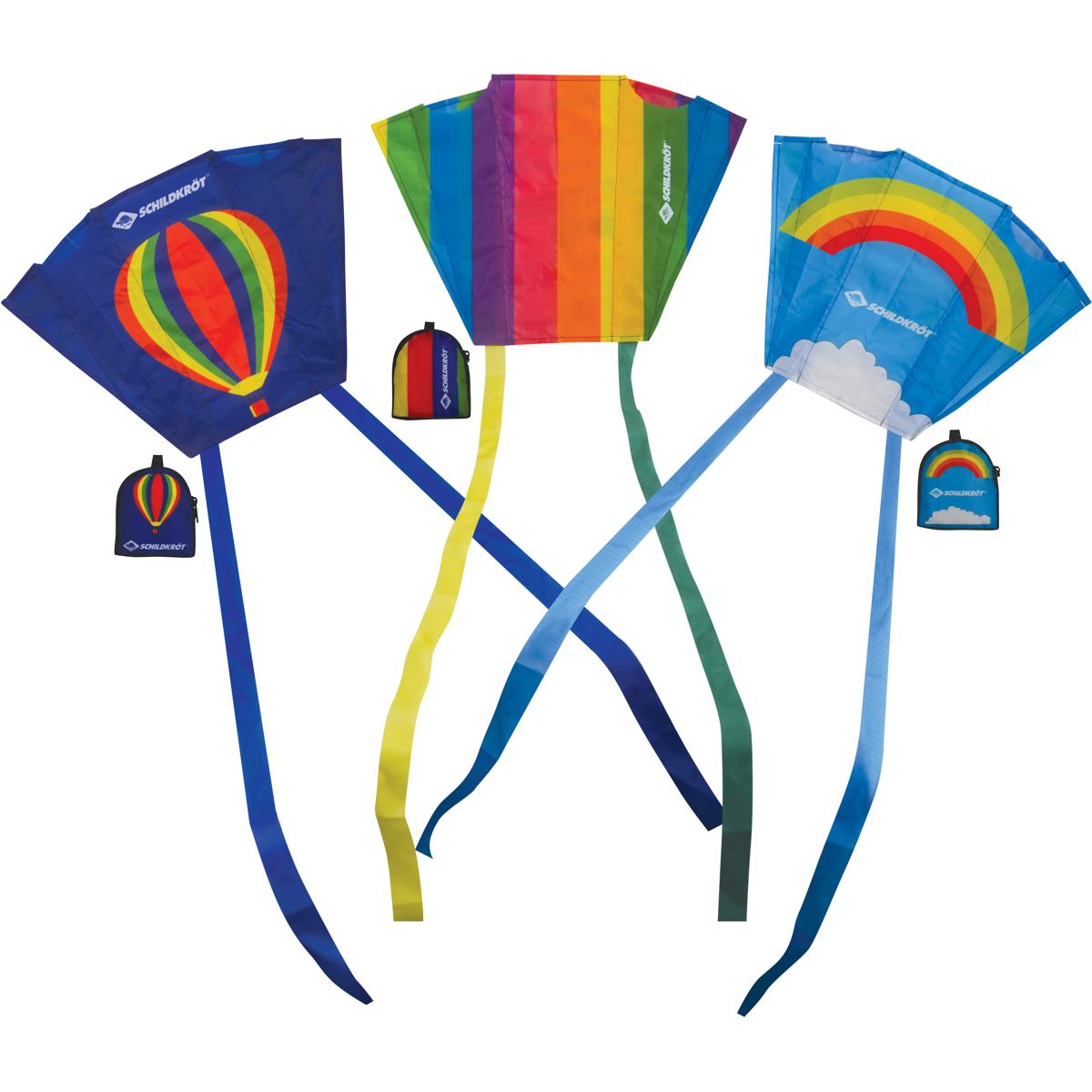 Der kleine, handliche und stablose Taschendrachen ist ohne Zusammenbau sofort flugfertig. Kommt Wind auf, wird er einfach aus der praktischen kleinen Tasche herausgeholt und man lässt ihn steigen. Durch Karabiner und Gürtelschlaufe an der kleinen Tasche ist er der ideale Begleiter beim Spazierengehen und jederzeit einsatzbereit. Die 20m lange Polyester-Leine mit Handgriff ermöglicht Flugfreude bei einer Windstärke von 6-28 km/h bzw. 2-4 Bft. Eine Designauswahl ist bei den drei gezeigten Modellen nicht…