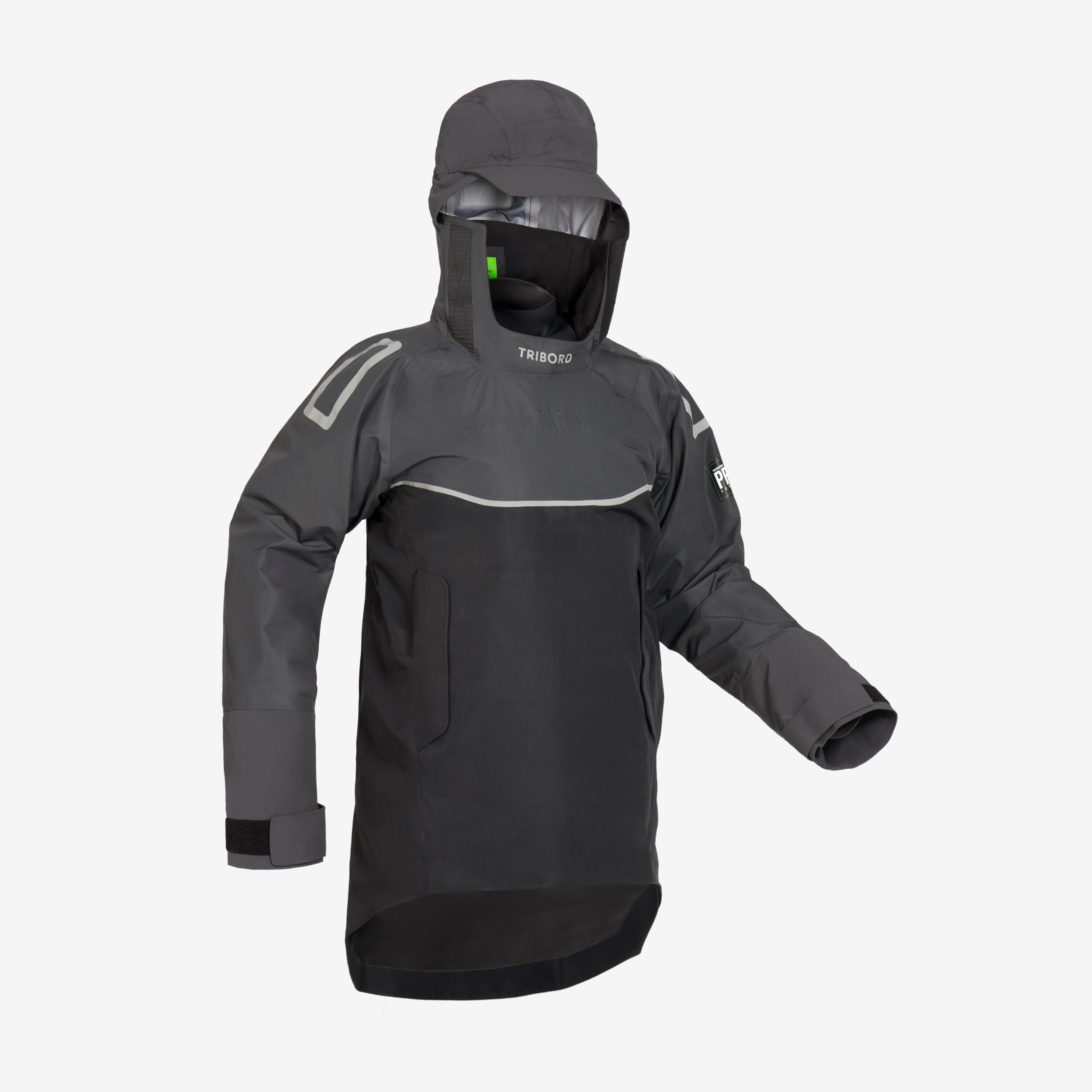 Besonders wasserdichter Stoff. Jackenlänge. Neoprenkragen/-manschetten. hoher Kragen und Kapuze sorgen für Wasserdichtigkeit unter extremen Bedingungen und für ein weites Sichtfeld. Dichte Manschetten und Neoprenkragen. Wasserdicht: 30.000 mm Wassersäule. |Robustes. wasserdichtes Material an Rückseite der Oberschenkel und Gesäß |Spritzschutz. Außenkragen und Kapuze sind verstellbar. |Wasser perlt über den Stoff ab. damit du möglichst trocken bleibst. |Kapuze. die im Kragen eingerollt wird. Maske. die seitlich verstaut wird.|Die Membran ist winddicht und somit wärmespeichernd.|Fleecegefütterte Bauchtasche zum Aufwärmen der Hände
