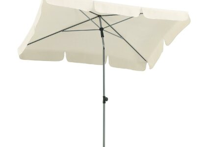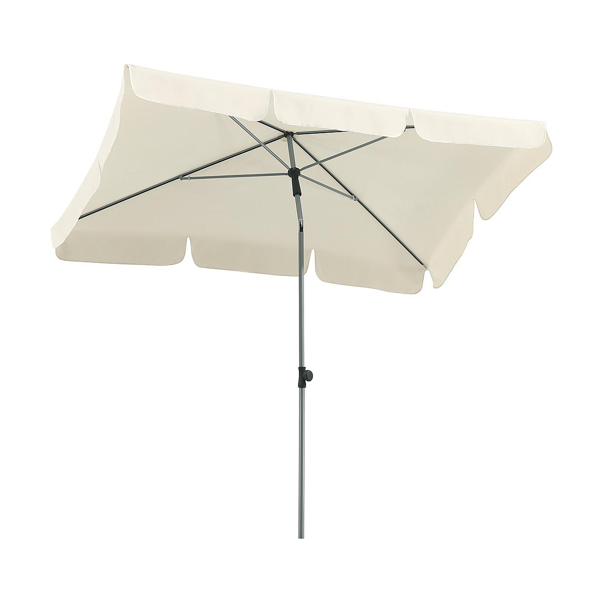Ein stilvoller und stabiler Sonnenschirm. Bietet Schutz vor schädlicher Sonneneinstrahlung. Bespannung Polyester, ca. 160 g/m² Verrottungsfest Wasserabstoßend imprägniert mit Volant und Bandeinfassung Gestell pulverbeschichtet Großer Schieber mit Taste Drehfeststeller Kugeltop Metallknicker mit Druckknopf Stock 2-teilig, Ø 22/25 mm Technische Daten: Material Schirm: 100 % Polyester Größe: 180 x 120 cm Gestell: silbergrau Kunststoffteile: anthrazitgrau Farbe: natur