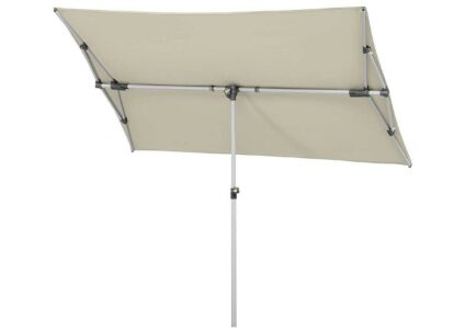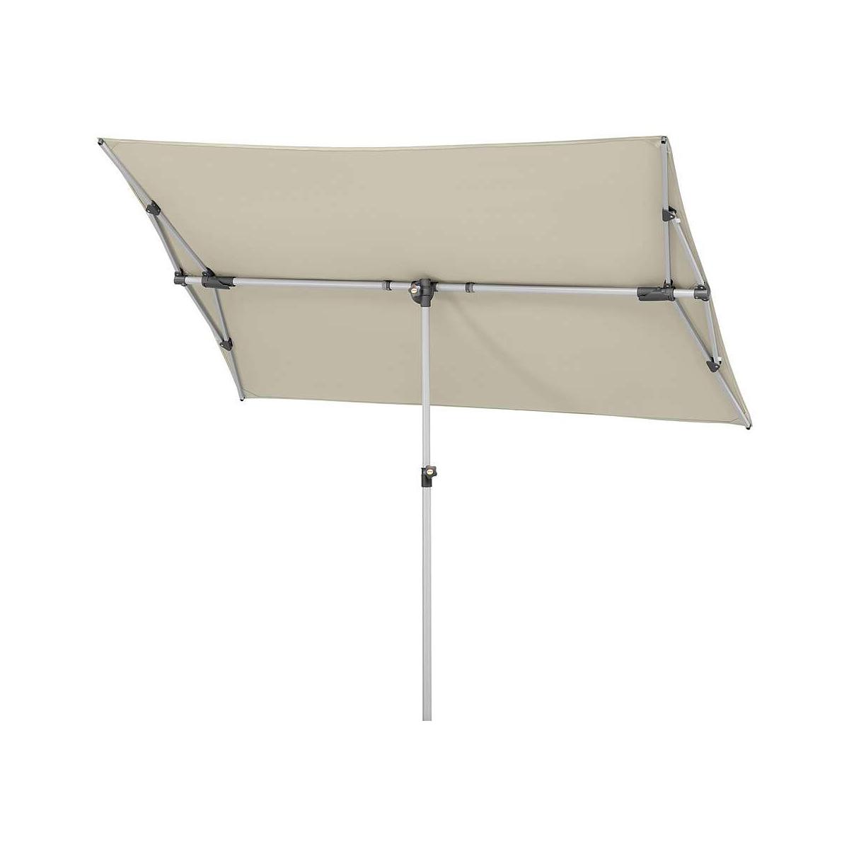 Wasserabstoßend imprägniert, verrottungsfest, rechteckiger Schirm mit einer Größe von ca. 190 x 140 cm. Stock 2-teilig mit Ø 32 mm, in alle Richtungen dreh- und schwenkbar, Schirm bis zu 20 cm seitlich verschiebbar und bis zu 69 cm in der Höhe verstellbar. Auch ideal als Sichtschutz. Inkl. Schutzhülle. Technische Daten: UPF 50+ Standard AS/NZS4399 Material Bespannung: 100 % Polyester Material Gestell: silbergrau pulverbeschichtetes Alu/Stahl-Gestell Maße 190 x 140 x 188 cm (L x B x H) Packmaß 194 x 18 x…