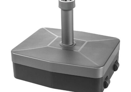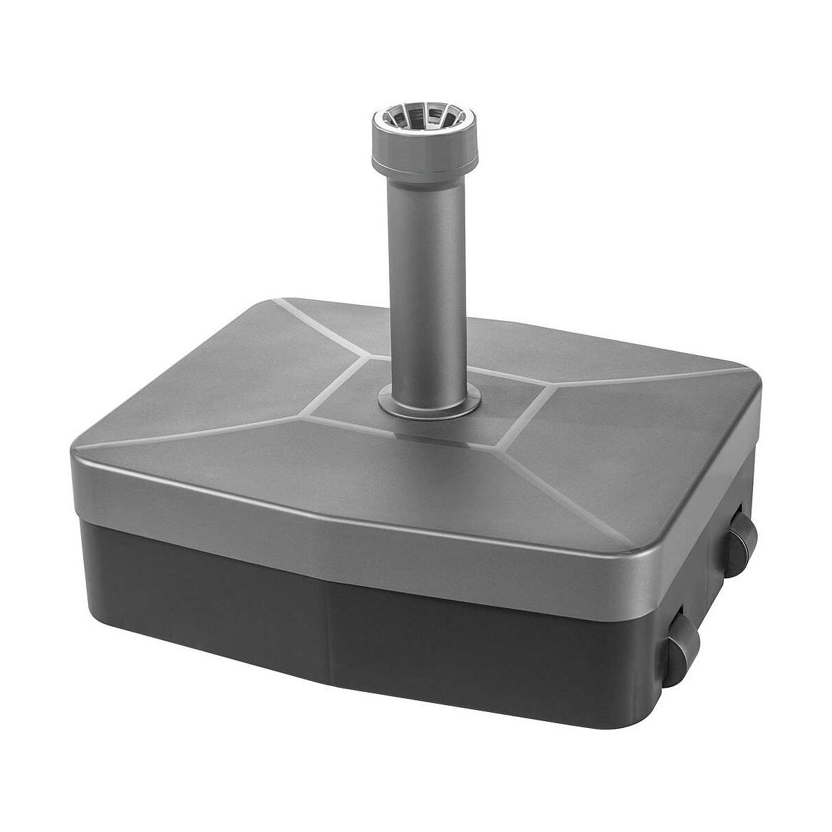 Fahrbarer Schirmständer zur Befüllung mit bis zu 45 kg Sand mit 2 integrierten Laufrollen und Griffmulde, für Schirmrohre mit Ø 30 – 50 mm. Technische Daten: Farbe: anthrazit Material: PE Maße: 49 x 41 x 40 cm (L x B x H) Gewicht: 2 kg passend für Schirmrohr Ø 30-50 mm Lieferumfang: 1 Schirmständer