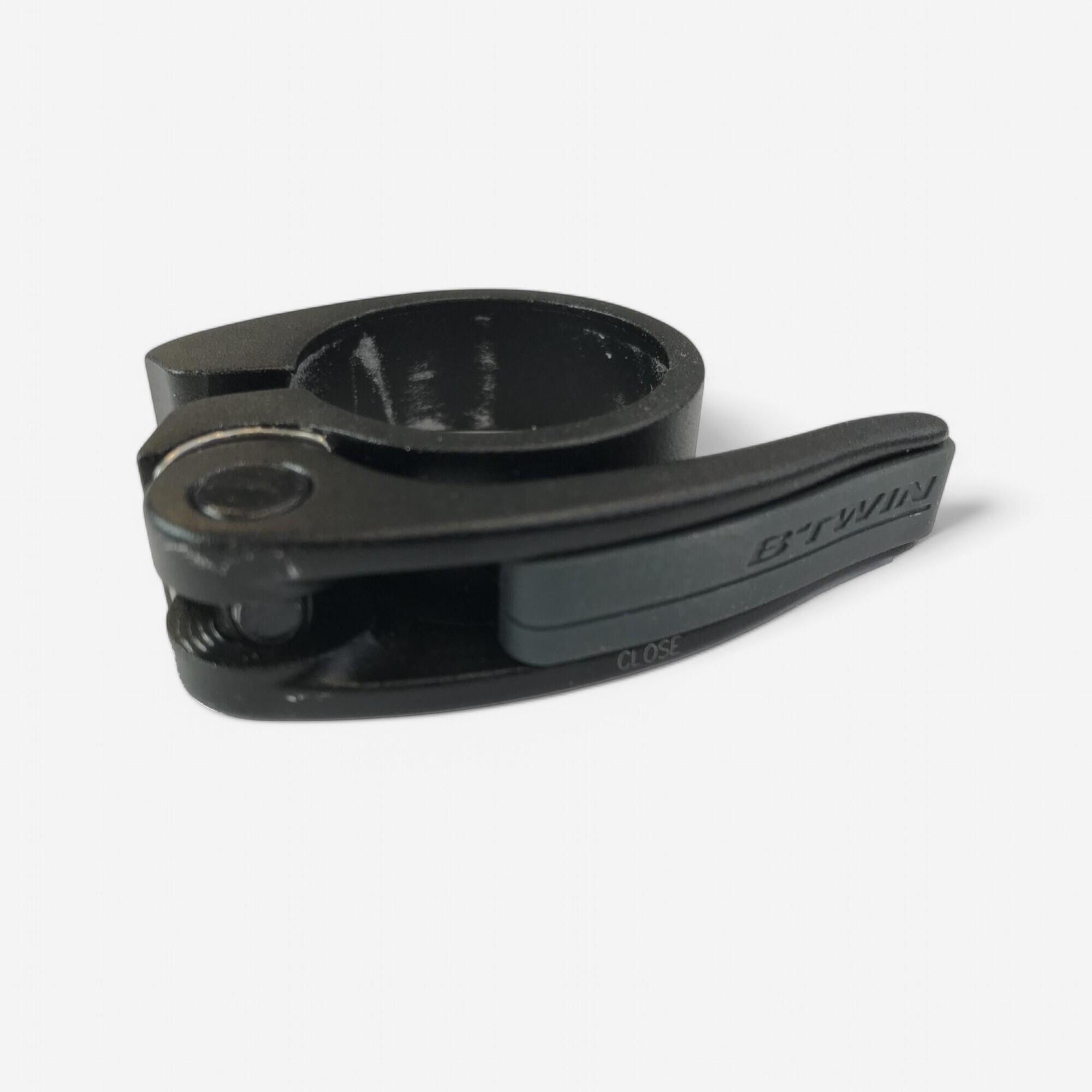 35 mm Sattelklemme mit Schnellspanner Kompatibilität::Für Rahmen und Sattelstützen mit 31,6 mm Durchmesser|Einfache Handhabung::Zum Einstellen der Sitzhöhe und Abnehmen des Sattels ganz ohne Werkzeug|Stabilität::Sattelklemme aus 6061er Aluminium und SCM435 Stahl|Gewicht::36 g