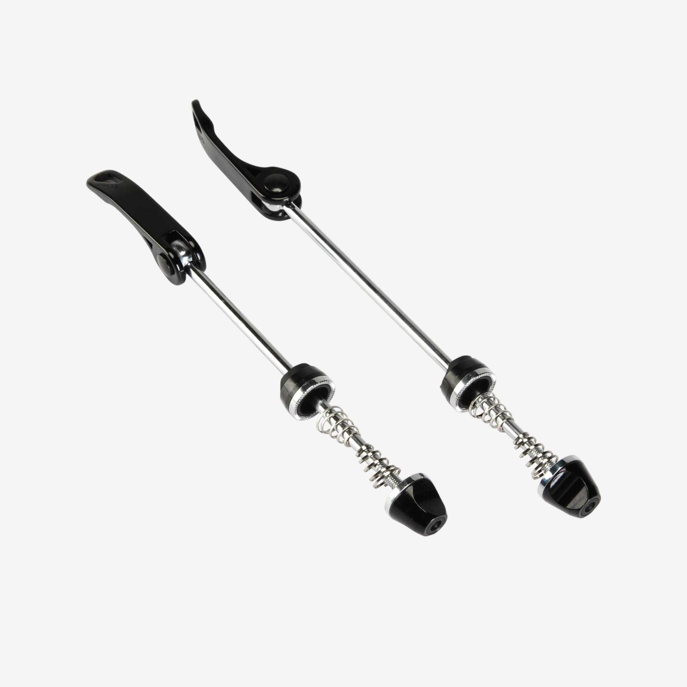 Schnellspanner für das Vorder-/Hinterrad zur raschen, werkzeuglosen Befestigung deiner MTB Laufräder an Rahmen oder Gabel Kompatibilität::Für MTB-, Trekking- und City-Laufräder mit Hohlachse, für Vorder- und Hinterrad|Stabilität::Struktur: 80 % Stahl, 20 % Aluminium|Einfacher Auf- und Abbau::Für eine Hohlachse von 9 mm. Ein- und Ausbau der Laufräder ohne Werkzeug. |Reparatur::Repariere dein Sportgerät und gib ihm so ein zweites Leben!