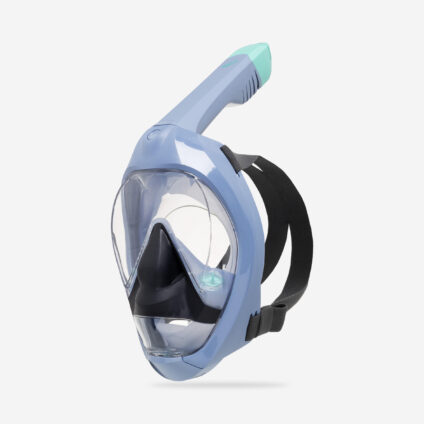 Das flexible Nasenstück der Easybreath-Maske 900 ermöglicht das Abtauchen bis in 3 m Tiefe. um die Unterwasserwelt zu erkunden. Nasenzugang. um den Ohrendruck bei einer Freitauchtiefe bis zu 3 m auszugleichen|Vollgesichtsmaske für eine natürliche Atmung durch Nase und/oder Mund.|Rundum-Sicht. 180°-Effekt |Exklusiv-Konzept zur Luftzirkulation. um das Beschlagen der Maske zu verhindern|Das Dry-Top-System verringert das Eindringen von Wasser durch den Schnorchel.