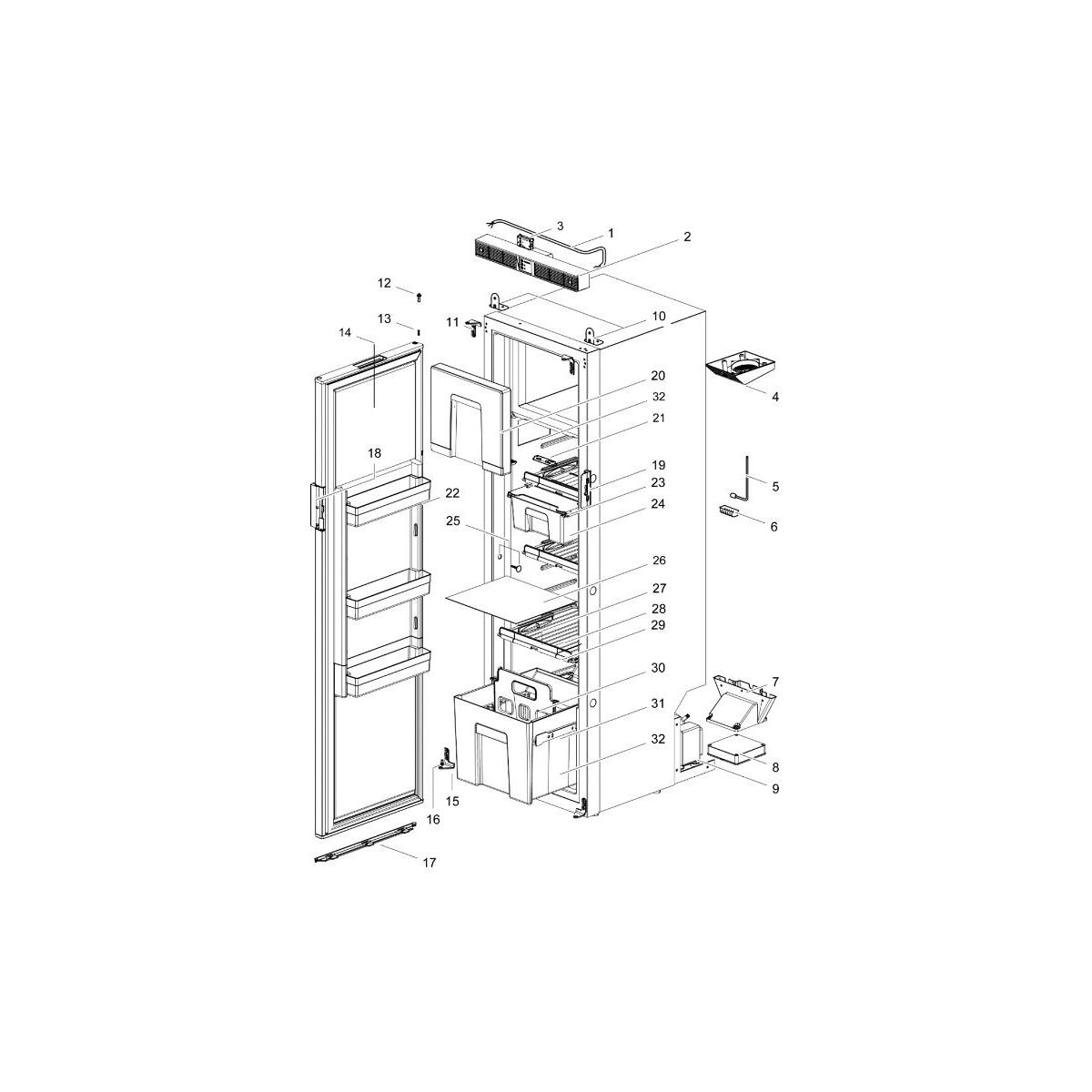 Schranktür für T1132 von Thetford. adsf asdf Abbildung Nr. 11 – 17 (gem. Explosionszeichnung) Thetford Artikelnummer: 691876