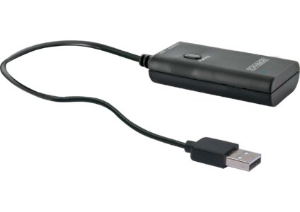 Mit Hilfe des SCHWAIGER Bluetooth Stereo Senders ist es möglich, ein Fernsehgerät, oder auch andere Geräte ohne Bluetooth Funktion, bluetoothfähig zu machen. Hierzu wird der Klinkenausgang des entsprechenden Geräts (z.B. Fernseher) verwendet, um eine Tonübertragung möglich zu machen. Nach einem erfolgreichen Anschluss ist es möglich, den Ton auf bis zu zwei Bluetooth Kopfhörern oder Lautsprechern gleichzeitig wiederzugeben. Umwandlung und Übertragung eines 3,5 mm Klinkensignals (Eingang) auf ein…