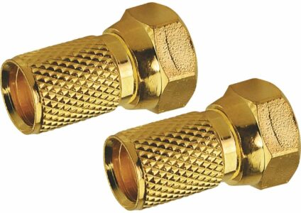 SCHWAIGER F-Stecker Set, Ø 6,8-7 mm, zum Aufdrehen, vergoldet, 2 Stück
