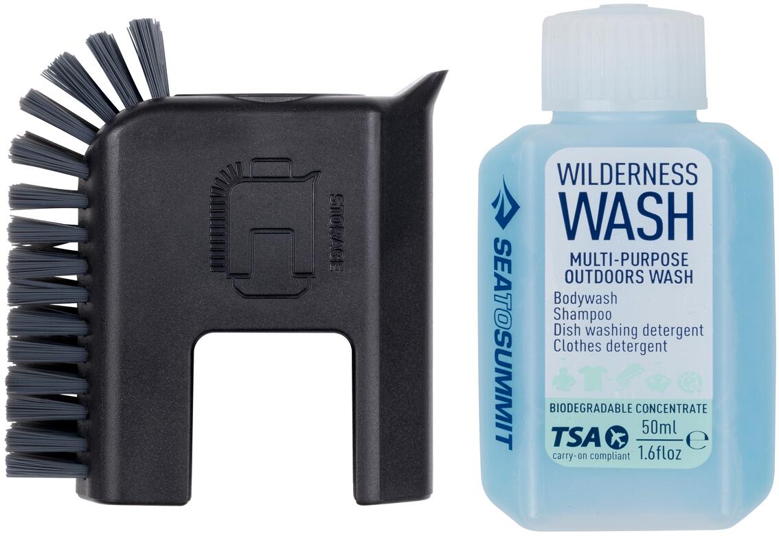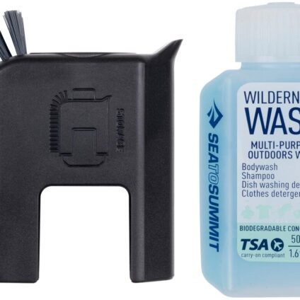 Handflächengroßer Topfschrubber aus Polypropylen mit Nylonborsten, integriertem Schaber und einer 50 ml-Flasche des biologisch abbaubaren Wilderness Wash.Handflächengroßer Topfschrubber aus Polypropylen mit Nylonborsten, integriertem Schaber und einer 50 ml-Flasche des biologisch abbaubaren Wilderness Wash. Dieses Geschirrspülset im Taschenformat macht kurzen Prozess mit der Reinigung von Campingküchen. Pot Scrubber und die integrierte 50-ml-Flasche Wilderness Wash passen in jede Handfläche hergestellt…