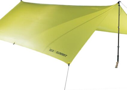 Beim Tarp Escapist 15D bieten alle acht Hypalon-Abspannpunkte Halt für die Spitze eines Trekkingstockes. Reflektierende Abspannleinen werden mitgeleifert. Diese Abspannpunkte ermöglichen eine Vielzahl an Aufbaumöglichkeiten und dienen auch als Aufhängepunkte für die (separat erhältlichen) Escapist Mesh Inners. Technische Daten: Aus 15 Denier Sil/PU Mantel. 1,200mm waterhead rated Nylon Acht Hypalon und bar-tack verstärkte Ausziehpunkte Extrem leicht und kompakt