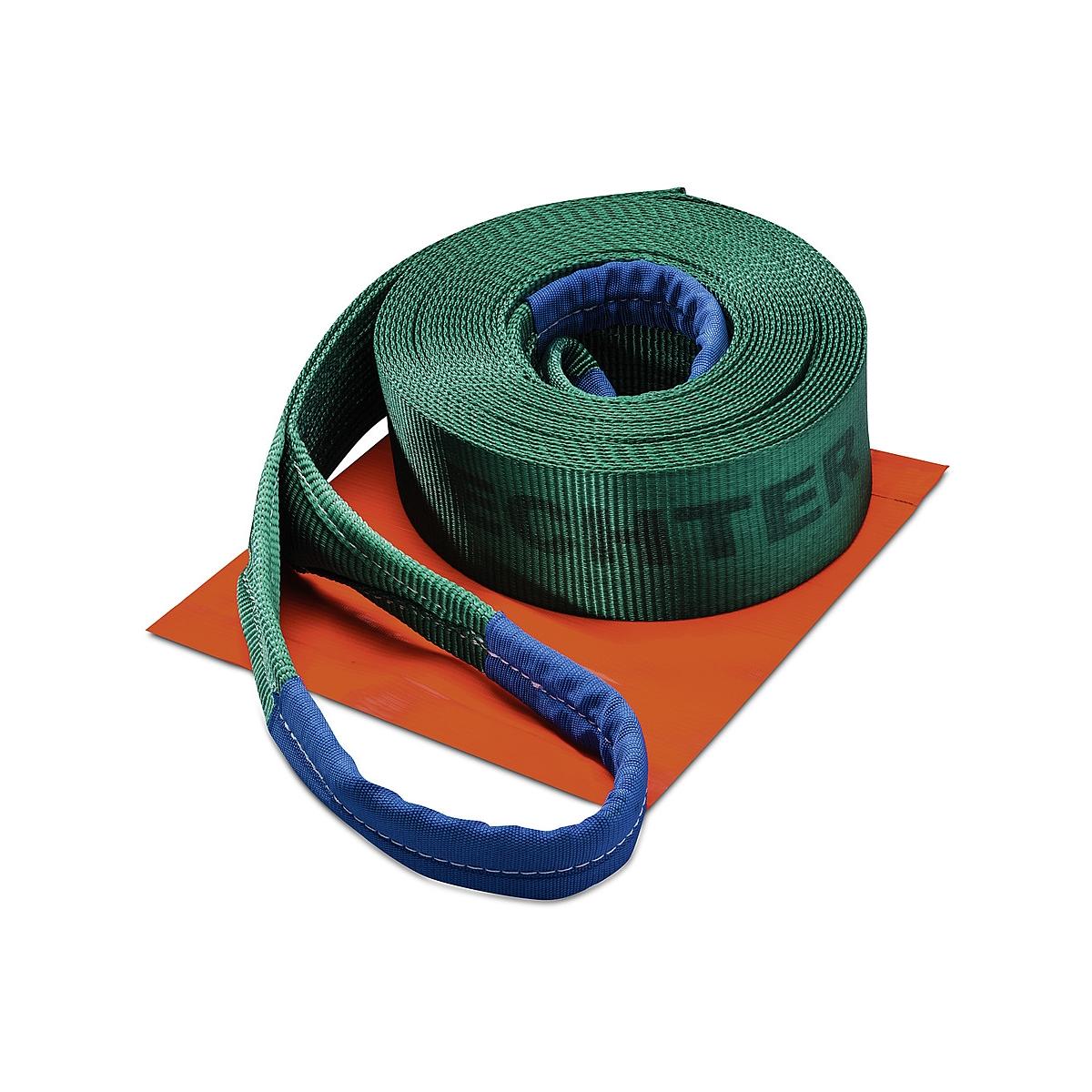 Mit diesem einlagigen Bergegurt können z. B. Autos gezogen oder Seilzüge befestigt werden. Bitte beachten Sie immer die Zugleistung und die Bruchlast des Gurtes. Dieser Gurt ist nur zum Ziehen – nicht zum Heben- zugelassen. Mittig ist immer eine Warnflagge aufgezogen. Bergegurte werden zum Ziehen von festgefahrenen Fahrzeugen eingesetzt. Der Gurt besteht aus 100 % Spezial-PES-Birolen, kraftstoff-, batteriesäure-, witterungs- und UV beständig. Verstärkte Endschlaufen. Technische Daten: Breite: 9 cm…