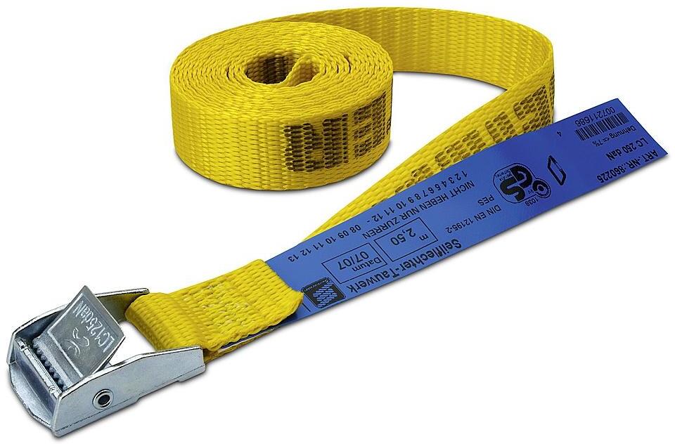 Gurtband aus Birolen (Polyester) vorgereckt, mit Klemmschloss und dehnungsarm. Nach DIN EN 12915-2 geprüft und zugelassen. Mit blauem Prüflabel. Universell einsetzbar. Da kaum Dehnung im Gurt optimaler Gurt für die Ladungssicherung. BG-geprüft. Technische Daten: Länge: 4 m Produktfarbe: gelb Breite: 2,5 cm Belastbarkeit: 250 daN