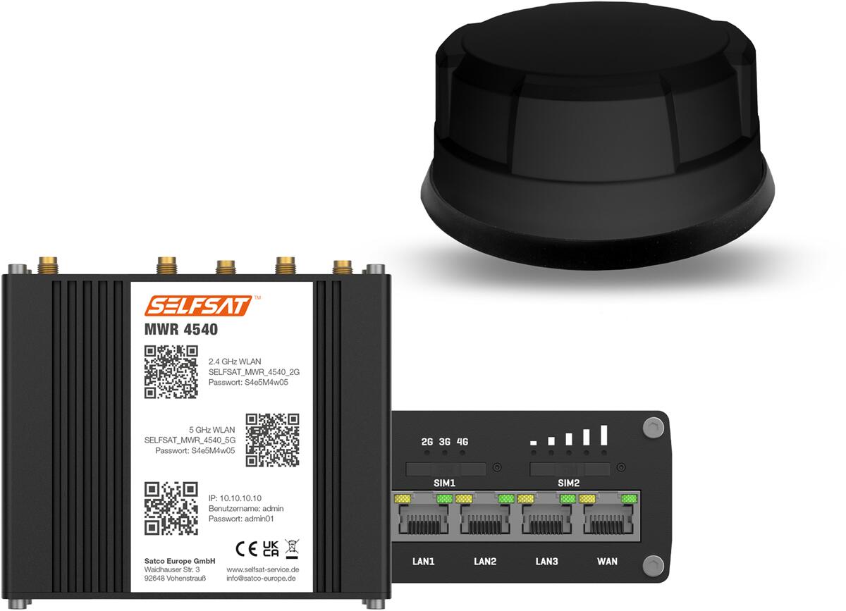 SELFSAT MWR 4540 4G Cat 6 WLAN Router, bis 300 Mbps, inkl. Panorama 5G Antenne, schwarz