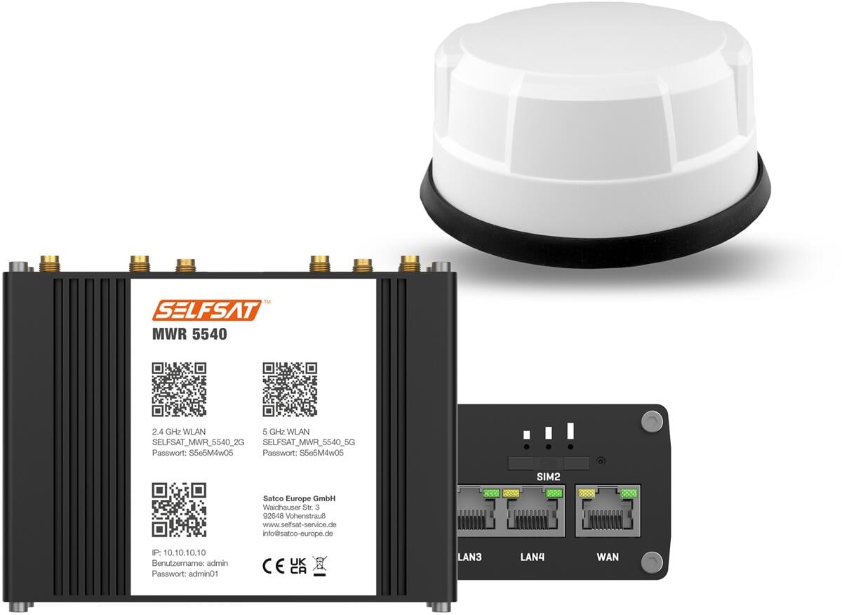 SELFSAT MWR 5540 5G Cat 12 WLAN Router, bis 2,6 Gbps, inkl. Panorama 5G Antenne, weiß