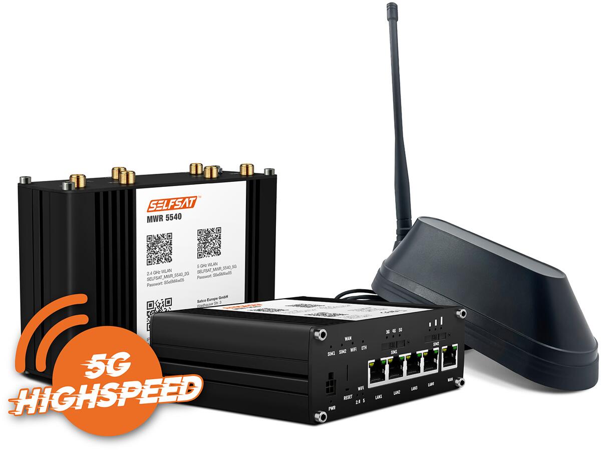 SELFSAT MWR 5540 5G Cat 12 WLAN Router, bis 2,6 Gbps, inkl. SHARK 5G Antenne, schwarz