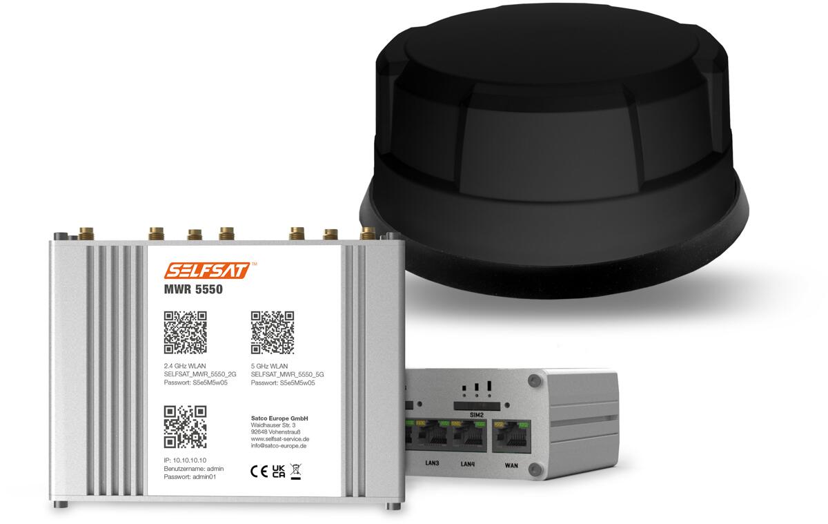 SELFSAT MWR 5550 5G/4G und WLAN Internet Router inkl. Panorama Antenne, schwarz