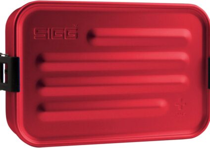 Preisgekrönt und federleicht. Die klassische SIGG Food Box wurde rundum erneuert und mit einigen hervorragenden Eigenschaften ausgestattet. Der Silikoneinsatz ist spülmaschinen- und mikrowellengeeignet. Ein Trenner aus Polypropylen kommt zum Einsatz. Und auch das ausgeklügelte Schließsystem wurde nochmals verbessert. mit Silikoneinsatz mit Trenner Technische Daten: Volumen: 900 ml Farbe: rot Maße: 17 x 11,7 x H 6 cm Gewicht: 255 g Material: Aluminium / Silikon / Polypropylen