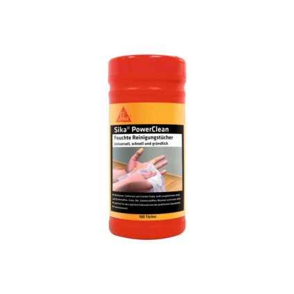 Sika® PowerClean – Feuchte Reinigungstücher Sika® PowerClean Reinigungstücher sind für das Bau Handwerk entwickelte feuchte Reinigungstücher für den täglichen Einsatz in der Werkstatt oder auf der Baustelle. Sie reinigen universell, schnell und gründlich ohne Wasser. Vielseitig einsetzbar entfernen Sika® PowerClean Reinigungstücher mühelos hartnäckige Verschmutzungen wie Öle, Fette, Benzin, Tinte, aber auch frische und noch nicht getrocknete Farben, Lacke, Dichtstoffe, Klebstoffe, Bitumen, PU-Schäume…