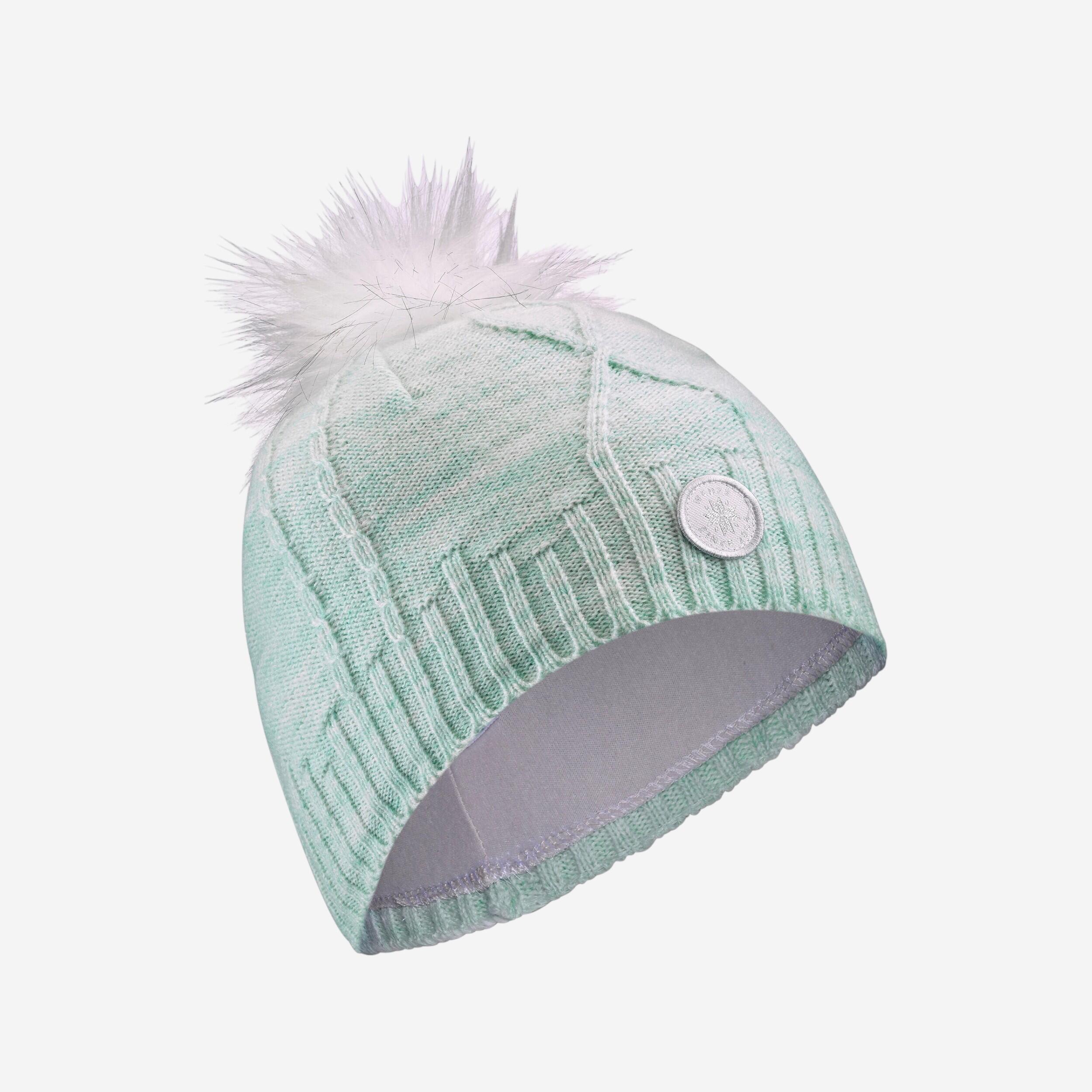 Skimütze Kinder Wolle Zopfmuster – Fur hellgrün