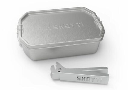 Transportieren, Kochen, Braten – mit der SKOTTI Boks aus Edelstahl wird aus Deinem SKOTTI Grill eine Outdoor-Küche to go! Jeder BOKS liegt eine stabile Griffzange aus Aluminium bei, mit der Du Deckel und Dose jeweils sicher heben und so als Topf oder Pfanne auf dem SKOTTI Grill benutzen kannst. Der Boden der BOKS braucht genau die Hälfte des SKOTTI Grillrosts – während Deine Nudeln kochen, die Currysauce blubbert oder die Zwiebeln schmoren, kannst Du also nebenan bequem weiter grillen. SICHER UND SAUBER…