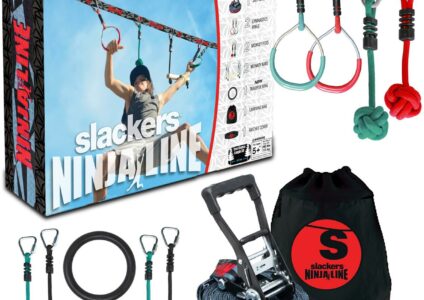 Die Ninja-Line mit massiven Metallratschen, Kunststoffgriffen, vernähter Schlaufe und inklusive Tragetasche. Versehen mit 12 vernähten Ösen im Seil, um die mitgelieferten Hindernisse an den fest verschraubbaren Karabinern zu befestigen. Mit im Set sind außerdem 2 Gymnastik Ringe, 2 Affenschaukeln und 3 Affenfäuste. Diese dienen als Hindernisse zum Hangeln und können individuell angebracht werden. Die Ninja-Line kann außerdem als Slackline verwendet werden. Technische Daten: Länge: 11 m Breite: 5 cm…