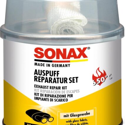 Set bestehend aus SONAX AuspuffReparaturPaste und einem speziellen, hochtemperaturbeständigen Glasseidengewebeband. Verschließt größere Risse, Löcher und undichte Stellen im Auspuffsystem dauerhaft, schnell und absolut gasdicht. asbestfrei und extrem hitzebeständig. Technische Daten: bestehend aus SONAX AuspuffReparaturPaste und einem speziellen, hochtemperaturbeständigen Glasseidengewebeband Gewicht: 289g Gebrauchsanweisung: Untergrund von Fett und Rost befreien und Umgebung der Schadstelle anfeuchten….