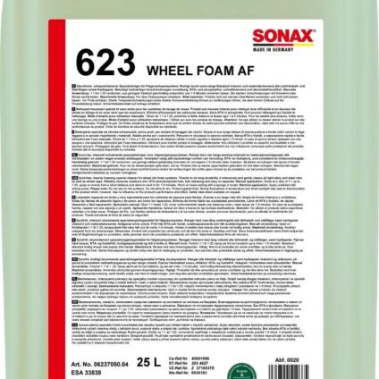 Säurefreier, schaumintensiver Spezialreiniger für Felgenschaumsysteme. Reinigt durch seine lange Standzeit intensiv und materialschonend alle Leichtmetall- und Stahlfelgen sowie Radkappen. beseitigt hartnäckige Verschmutzungen zuverlässig NTA- und phosphatfrei, schnelltrennend und abscheidefreundlich Technische Daten: Volumen: 25l Lieferumfang: 1 WheelFoam AF