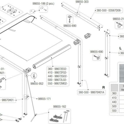 Spannarm + Stützfuß links – Fiamma Ersatzteil Nr. 98670H01 – für Caravanstore XL 360-550cm