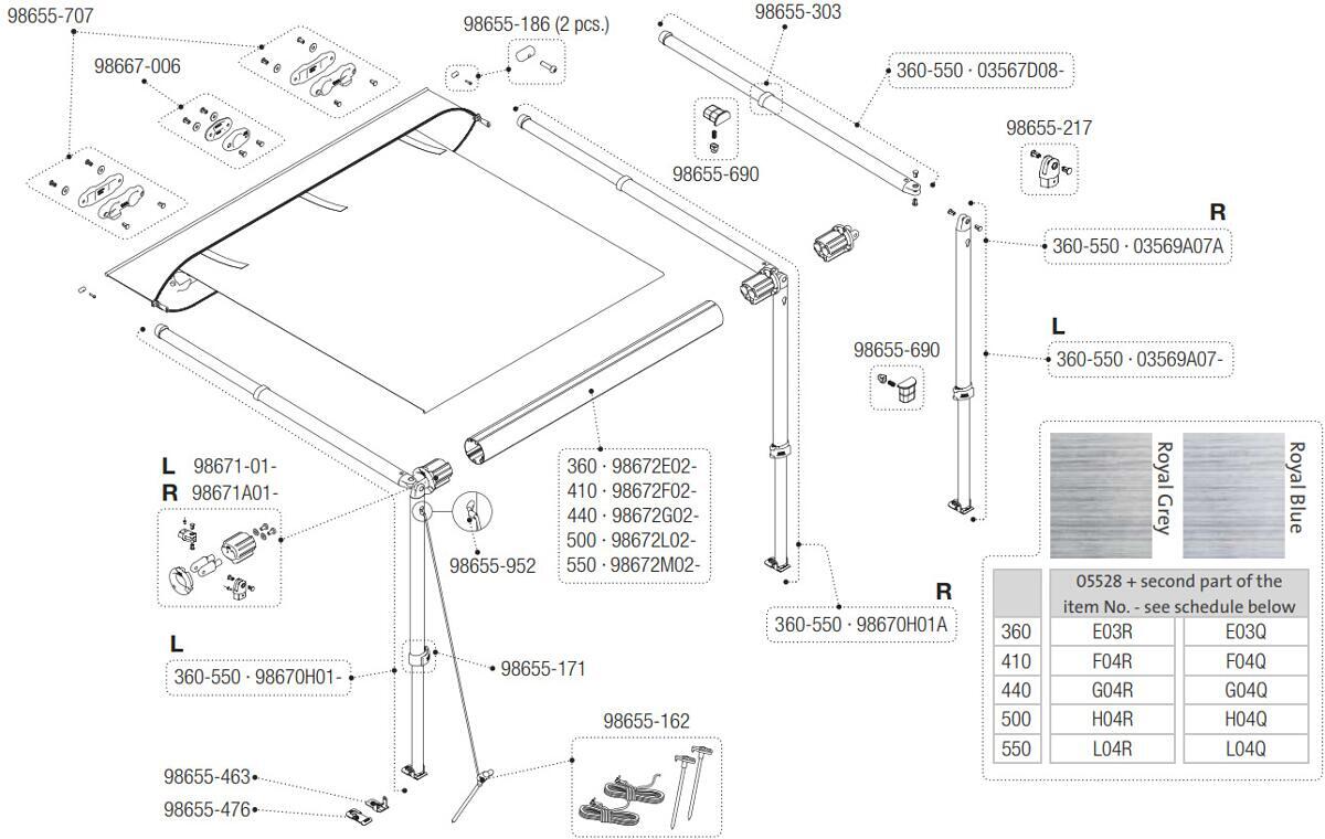 Spannarm und Stützfuß auf der linken Seite Ihrer Caravanstore XL Markise 360-550 cmAbb. Nr. 98670H01Fiamma Art.Nr. 98670H01